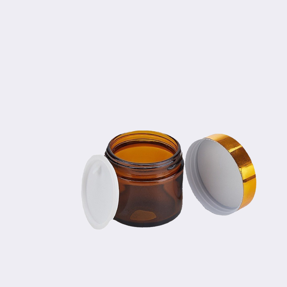 Elevate your product presentation with our elegant amber glass jars, featuring a gold lid. The sophisticated amber finish offers a luxurious appearance while protecting light-sensitive contents.