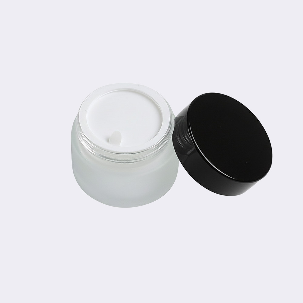 Elevate your product presentation with our elegant frosted glass jars, featuring a black lid. The sophisticated frosted finish offers a luxurious, diffused appearance while protecting light-sensitive contents.